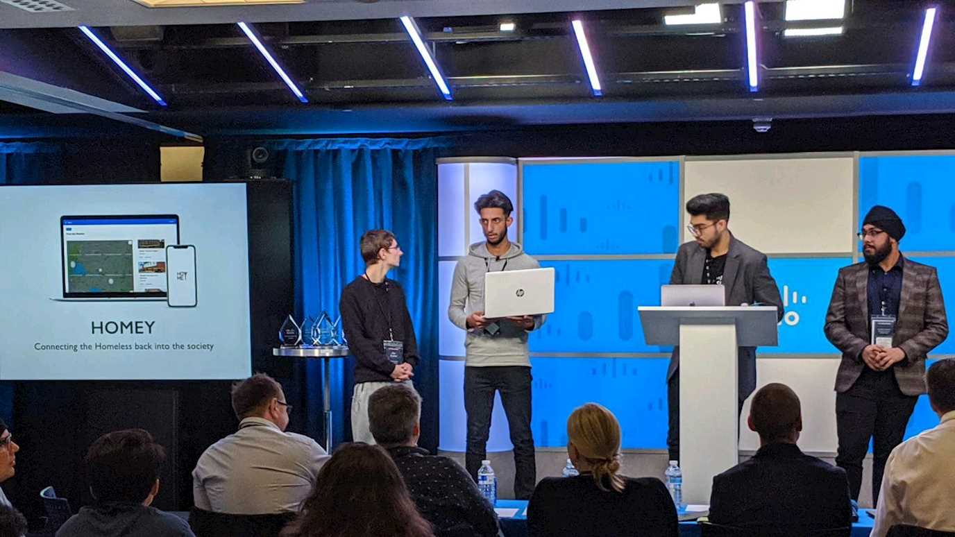 A team of Royal Holloway undergraduate students has come second in a 24 hour hackathon challenge to reduce homelessness using the power of technology.