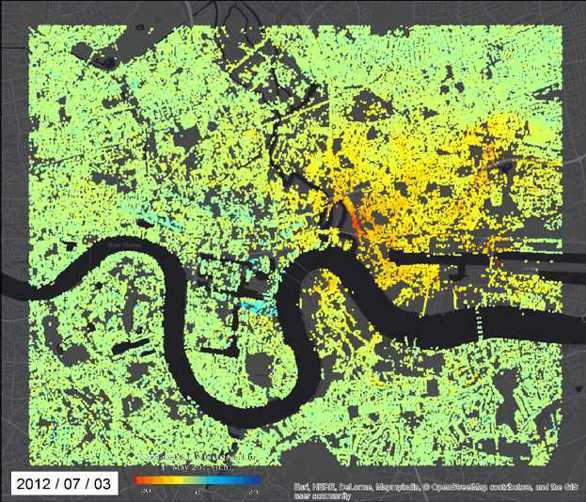 As a planetary and engineering geologist, my research has taken me both out of this world and deep into its heart. Employing a technique called persistent scatterer interferometry, my team have identified faults under London moving at millimetres per year, less than a tenth the rate of the San Andreas in California, and previously undetectable. Before our measurements we didn’t even know the faults were there! Yet they explain many of the hazards encountered by engineers in London, from blowouts of hypoxic air along the Thames, to the loss of an entire tunnelling machine. Our technique is able to sense ground movements in response to engineering, groundwater flow and geological activity.