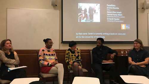We screened Hannah Kemp-Welch’s audio documentary [voices surface]: An Audio Documentary about Accessing Handsworth Songs. Exploring the making of a 2023 accessible, audio-described version of the Black Audio Film Collective’s 1985 film Handsworth Songs (dir. John Akomfrah), Hannah’s documentary charted the creative and ethical decisions made during the production of this audio-description project. In our event, we screened Kemp-Welch’s audio documentary with creative captions by Care-fuffle alongside contextual images from Akomfrah’s original film. As well as Hannah Kemp-Welch herself, the subsequent panel included academics and practitioners involved in the broader project of making the 2023 audio-described version of Handsworth Songs, all of whose voices featured heavily in the documentary we screened. These were Dr Sarah Hayden (University of Southampton), who led the project to audio describe Handsworth Songs; Elaine Lillian Joseph, the lead audio-describer on the project; and Dr Clive Nwonka (UCL), who had written an essay to accompany the audio-description project. This was a lively panel discussion which brought a rich context to the audio documentary and proposed new directions for reanimating the original 1985 film.