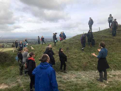 Credit: Jason Buck. University of Brighton student Jon Mason leads a storywalk, sharing local history and folklore in the South Downs.